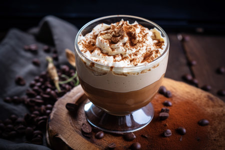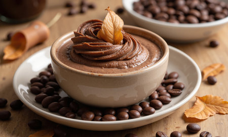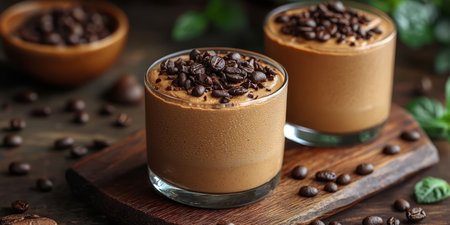 Rich espresso-infused mousse texture, with dark coffee beans sprinkled on top. Generative AI