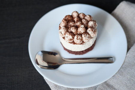 Delicious dessert with coffee flavor presented elegantly on a plate