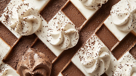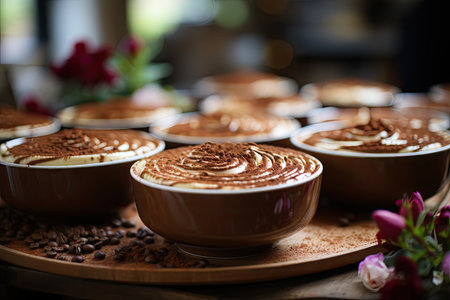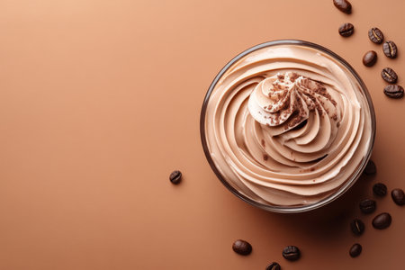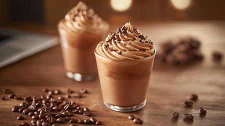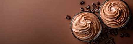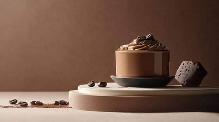 Indulge in a rich mocha mousse dessert that is beautifully swirled and elegantly presented on a soft brown surface, making it a perfect choice for any dessert lovers and special occasions