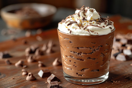 Decadent Chocolate Delight in a Glass, Layered with Whipped Cream and Gourmet Chocolate Shavings