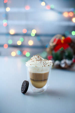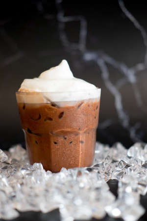 Cold chocolate with milk foam topping. Concept of a cooling drink. Summer drink.