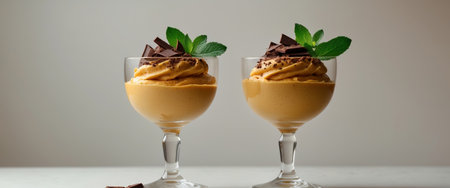 AI Generated. Creamy Pumpkin Dessert in Glasses with Chocolate and Mint Garnish