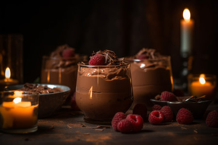AI Generated. Luxurious Creamy Chocolate Mousse with Raspberries and Mint