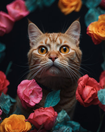 AI Generated. Adorable Ginger Cat with Bright Eyes on Colorful Background