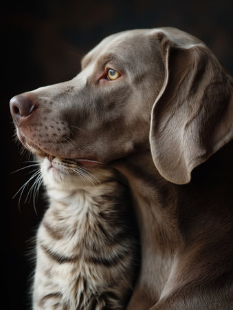 Gray cat portrait on dark background. Cute pet. Created with Generative AI