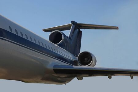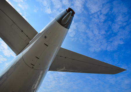 Dystopic image of the tail wing on a jet plane / aircraft. Concept of fear of flying or flying / aero phobia.