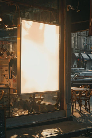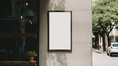 Generative AI, coffee shop street poster or signboard mock up for logo design, brand presentation, aesthetic muted neutral colors, on the wall outdoor