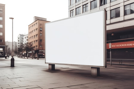 Urban street corner with blank billboard for advertising display. A quiet city street showcasing a large blank billboard for customizable advertising content