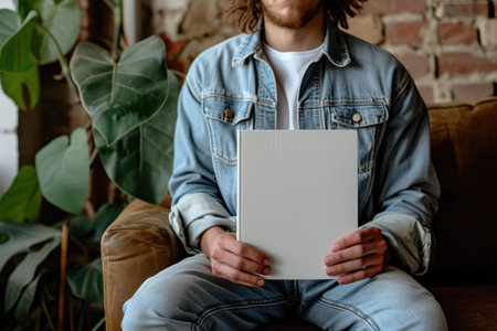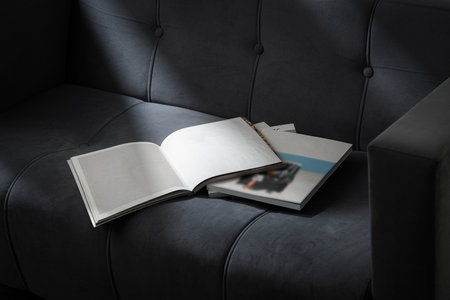 Book with blank cover and empty cover on a gray sofa