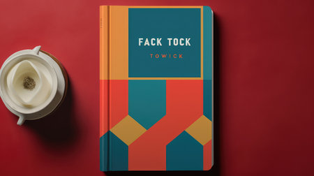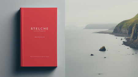 A closed novel book with blank cover on the table, editable mock-up series template ready for your design, cover selection path included.