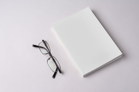 Blank book mockup on white background with copy space, top view