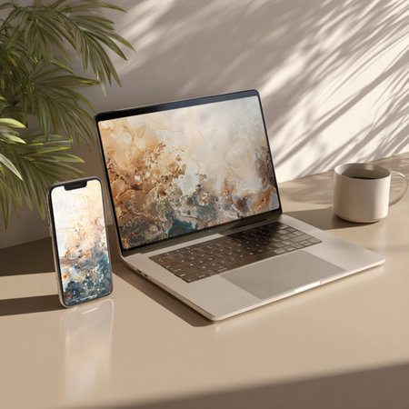 Minimal laptop and phone mockup with clean screen design, ideal for app presentation, website showcase, branding templates, and creative advertising projects