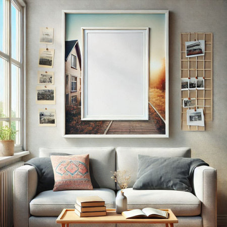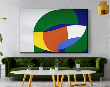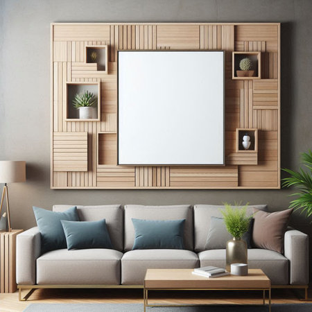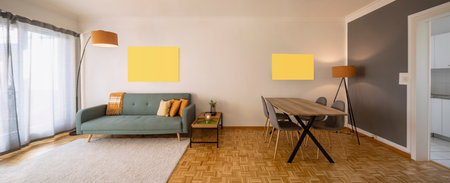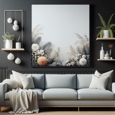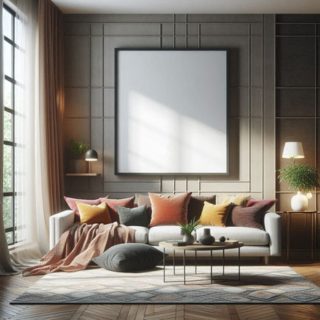 Stylish room mockup for picture art presentation, photorealistic 3D Illustration of the interior, suitable for using in video conference and as a virtual background.