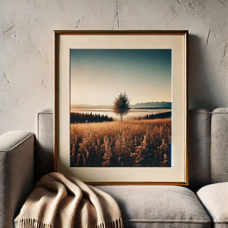 Mockup frame in interior background, room in warm tone, Scandi-Boho style, Generative AI