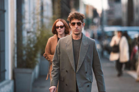 Milan, Italy - February 21, 2020: Street style appearance during Milan Fashion Week - streetstylefw20
