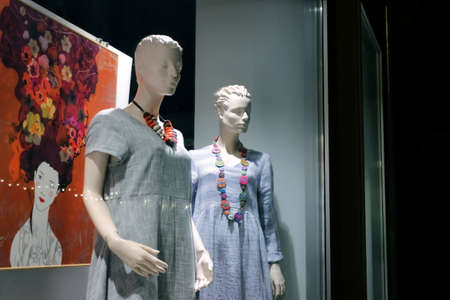 Mannequins in a showcase clothing store in Paris