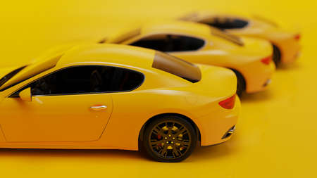 auto yellow. 3d illustration of fragments of vehicles on a yellow background.