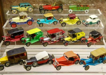 Istanbul, Turkey, 23 March 2019: Collections of various car miniature model at same scale. Some of them are scarce and the models become collectors. Rahmi M. Koc Industrial Museum