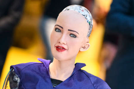 Social humanoid robot Sophia, a latest creation by Hanson Robotics company in Kyiv, Ukraine. October 2018