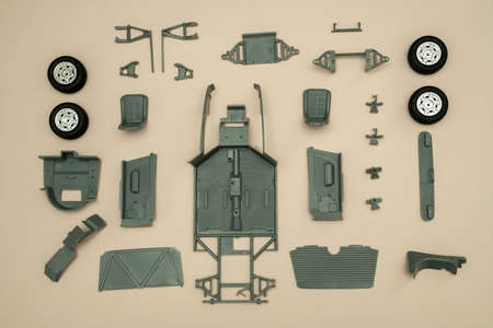 A captivating flat lay of industrial components showcases the beauty of design with an elegant arrangement of various pieces on a dark background.