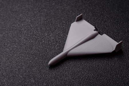 plastic model airplane with red wings against a dark background. tourism and travel concept.