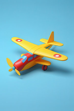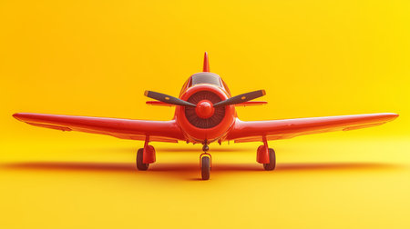 Bright red model airplane displayed against a vibrant yellow backdrop showcasing its design and details during a creative setup