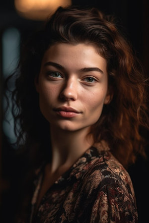 Confident elegance, serious beauty, and sadness in fine art portrait generated by artificial intelligence