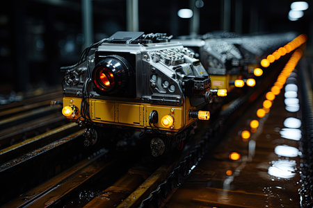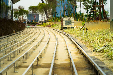 Close-up of train tracks, symbolizing journey and exploration. AI generative.