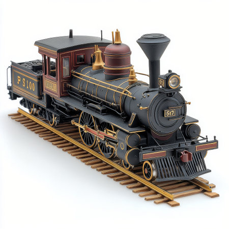 toy-like train model with intricate details. A high quality image making by generative ai.