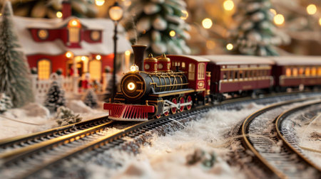 Charming miniature train adventure through a snowy landscape, bringing festive joy to winter scenes.