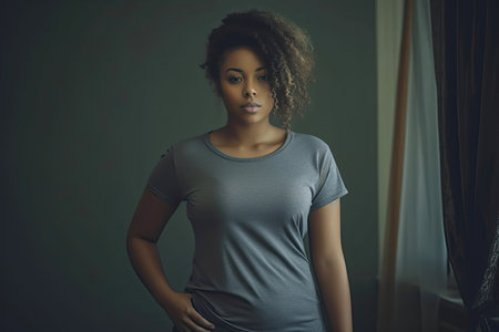 Confident Plus-Size Black Model in Chic Gray T-Shirt