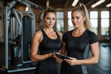 Two attractive and beautiful girls are talking about the training while warming up