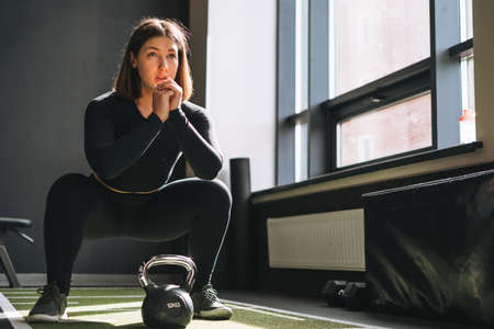 Young girl doing sports in the gym. Atmospheric gym