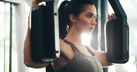 She wont stop until she gets there. Cropped shot of an attractive young sportswoman working out with an exercise machine in a gym.