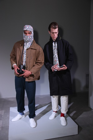 NEW YORK, NY - JULY 11: Models pose during the Death To Tennis presentation during NYFW: Men's July 2017 at Skylight Clarkson Sq on July 11, 2017 in New York City.