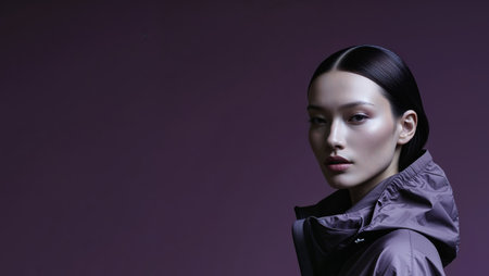 AI Generated. Fashionable windbreaker clothing banner with a sleek dark purple background for a trendy look