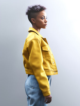 Fashionable african american woman in yellow jacket and jeans
