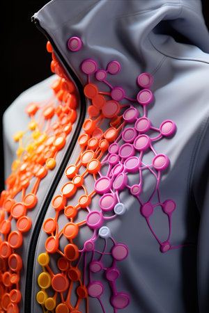 Smart Fabric Technology: Close-up of a garment with embedded smart fabric technology, displaying features like color-changing patterns or temperature-regulating materials.