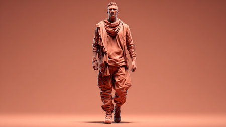Man in a raincoat on a brown background. 3d rendering