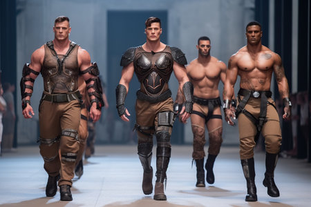Handsome men with muscular bodies on the catwalk made with generative AI