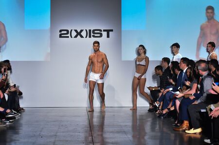 NEW YORK, NY - OCTOBER 14: Models walk the runway finale during 2(X)IST Men's Spring/Summer 2016 Runway Show on October 14, 2015 in NYC