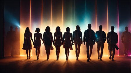 Glowing silhouettes of women and men. AI generated