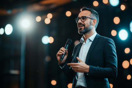 Transform your leadership with captivating training A charismatic speaker unlocks influence and success strategies through powerful storytelling and stage presence Master engaging audiences, achieve remarkable results, and enhance public speaking Develop communication skills and grow into a high-impact leader AI Generative