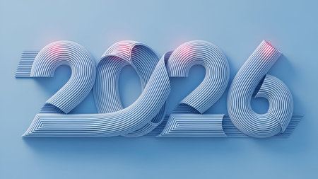 Shimmering silver digits depict the upcoming year 2026 against a moody, dark backdrop, evoking futuristic optimism and sleek modernity.