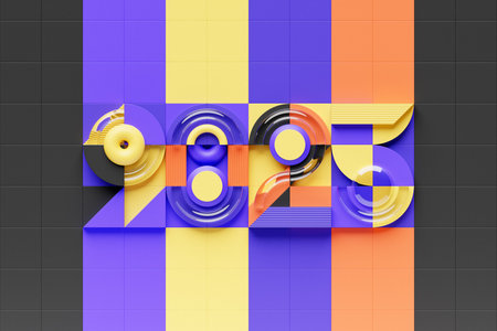 2025 calligraphy with 3d numbers on colorful background with New Year celebration balls for flyers, posters, signs for business design, brochures, cards, banners, postcards. 3D illustration