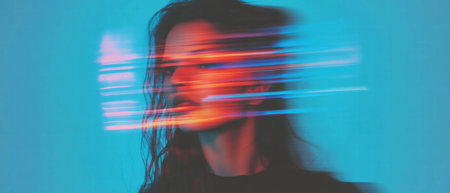 Glitch effect creates a distorted portrait with vibrant colors and sharp contrasts