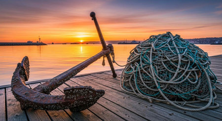 A gleaming metallic anchor outlined by a crisp shadow against a vibrant, textured blue surface, evoking maritime resilience and timeless nautical elegance.