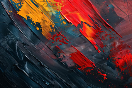 Discover a vibrant abstract texture featuring bold strokes of blue, yellow, red, and black. Ideal for creative projects and modern art displays, this artwork inspires imagination.
