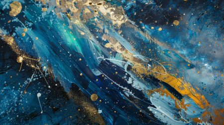 Abstract cosmic background with golden and blue swirling patterns, AI generated
