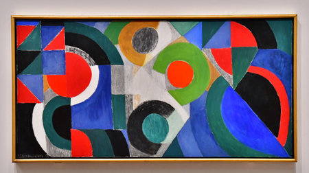 Abstract colorful geometric mural with bold shapes and vibrant colors